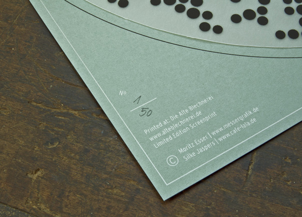 5 Farben Siebdruck auf 350g/m Recyclingkarton und 230g/m Transparentpapier